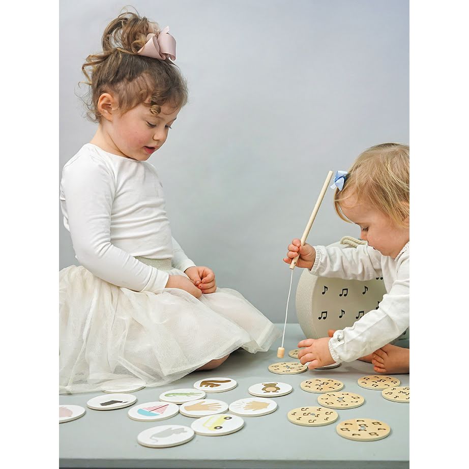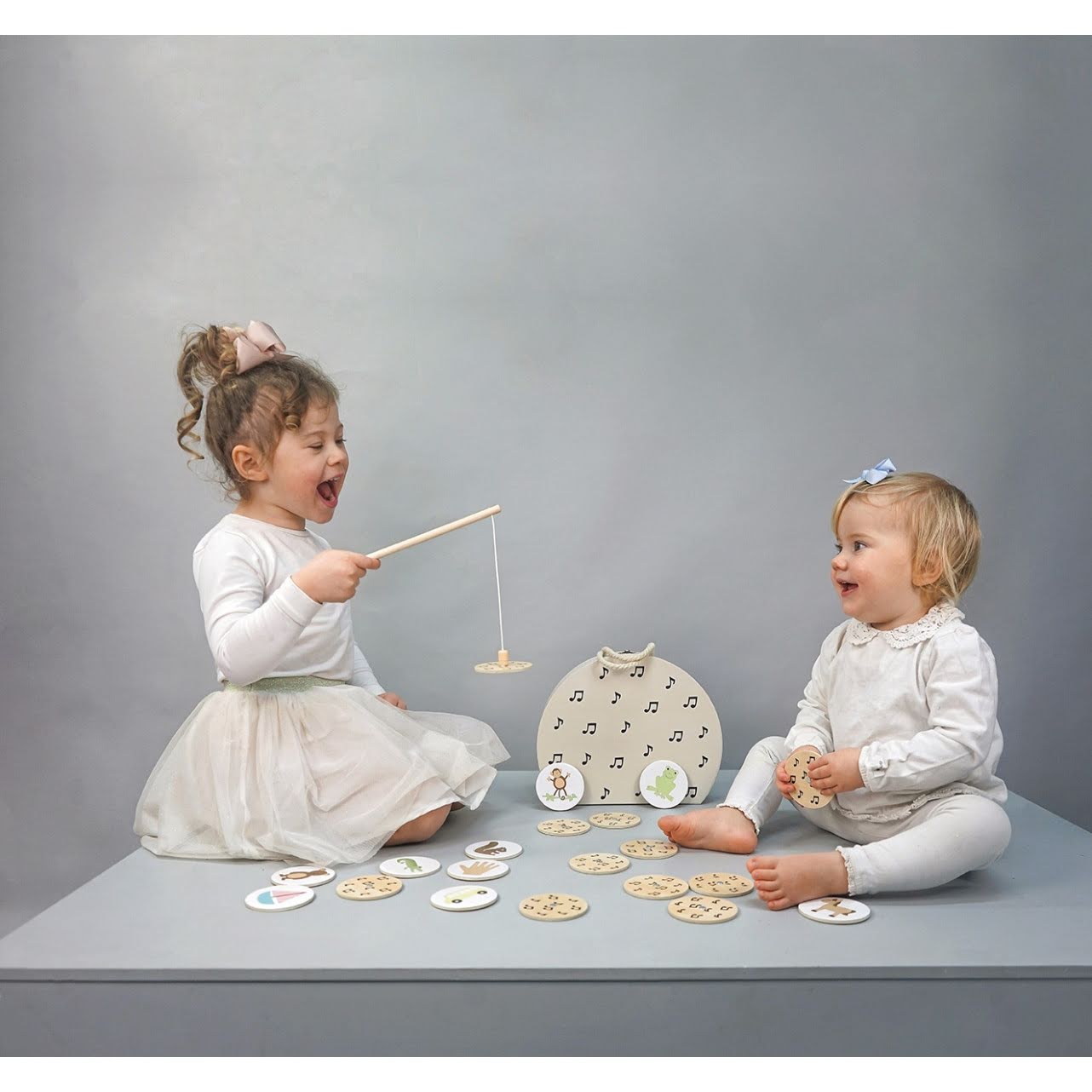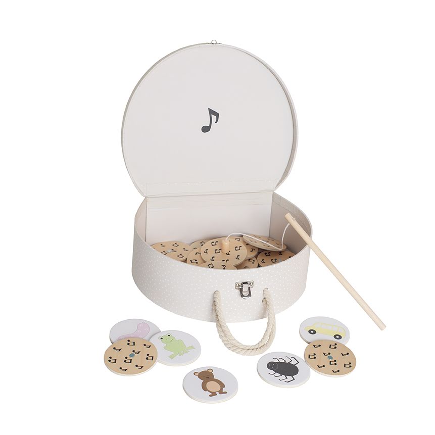 Let your children experience the fun of picking the cards in JaBaDaBaDo Songbag (Magnetic Game) and deciding which songs to sing together. This magnetic game features 23 cards with different motifs and an accompanying small fishing rod. Children can use the rod to select a card and sing the song associated with its motif. Combining words and singing is an effective and enjoyable way for children to learn to match words to pictures.