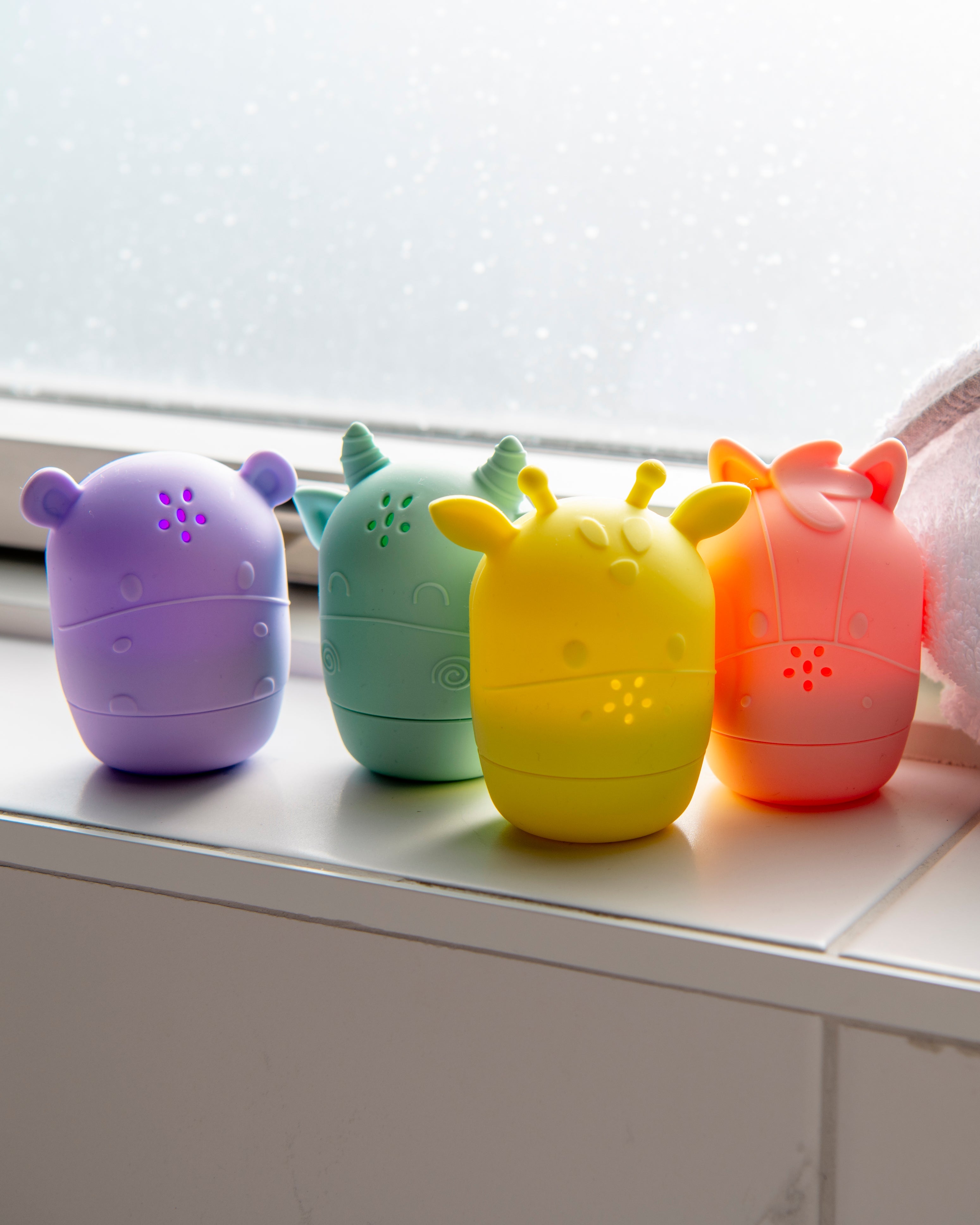 Make bath time fun and educational with our silicone bath toys - perfect for children 6 months and up, but fun for all ages! This set of four vibrant animals (giraffe, cow, hippo, and horse) are produced with BPA-free, food-grade silicone that are safe, durable and easy to clean.